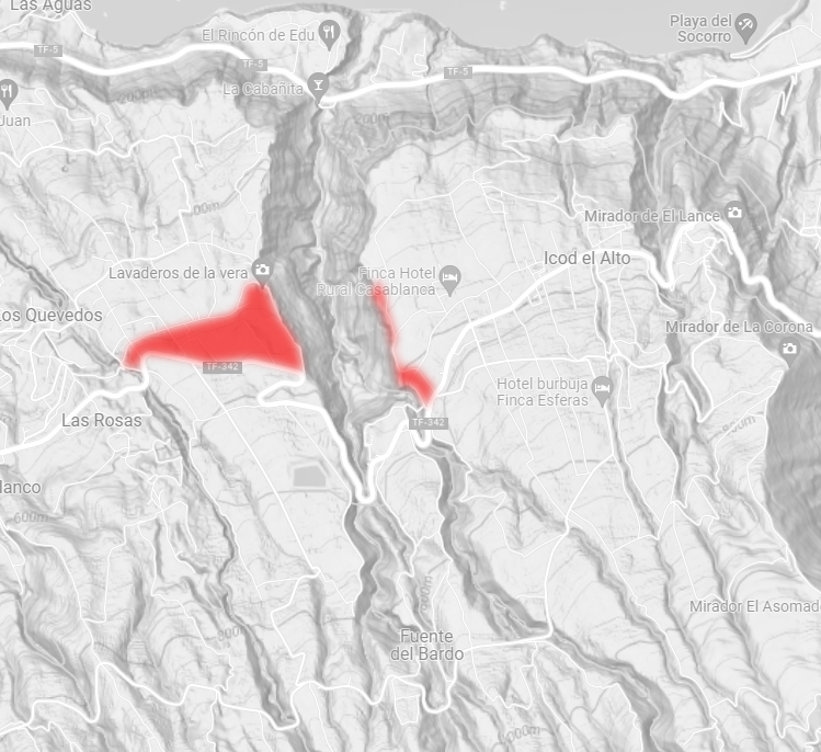 Az első kiszáradt, élettelen sáska egyedeket 2022 márciusában találtam itt, Észak-Tenerifén egy relatív kis területen La Guancha és Icod de Alto tartományok között (térképen berajzoltam, lásd képeknél).